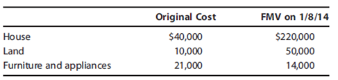 6. One of the assets that Anne inherited with the transfer of Gary'south estate was his house. Upon the advice of the financial consultant who shares role infinite with John, the Millers decided to catechumen Gary'south home into a furnished rental business firm. After several minor repairs (e.g., touching upward the paint on the interior walls, replacing various window screens, pressure washing the brick exterior, etc.), the property was advertised for rent in the classified section of the local newspaper on March one, 2014. The repairs cost $720, and the paper ad was $360. Based on reconstructed records and appraisal estimates, data about the property is as follows:
