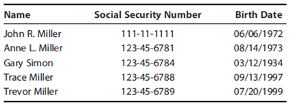 sixteen. The Millers have 2 sons who live with them: Trace and Trevor. Both are total-fourth dimension students. Trace is an accomplished vocalist and earned $iv,200 during the year performing at special events (e.g., weddings, anniversaries, borough functions). Trace deposits his earnings in a savings account intended to aid cover futurity college expenses. Trevor does not have a job.