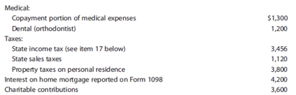 • The Millers had itemized deductions from AGI for 2013 of $16,700, of which $1,500 was for state and local income taxes.